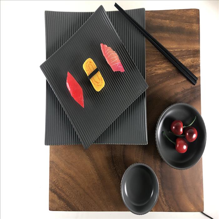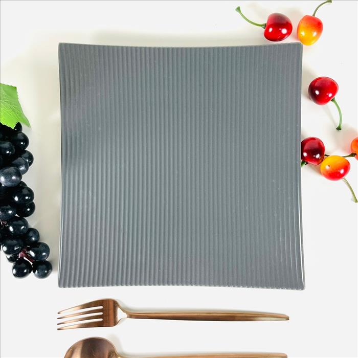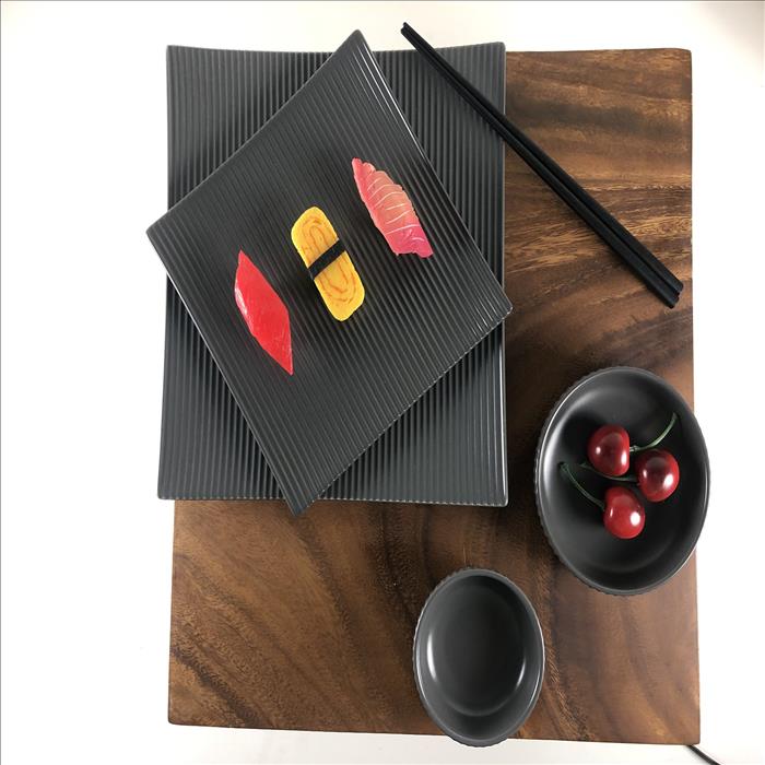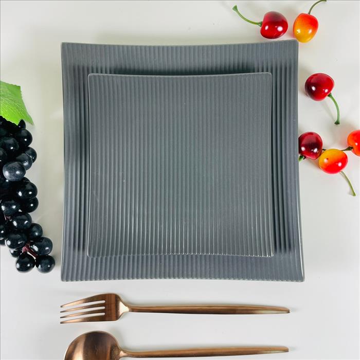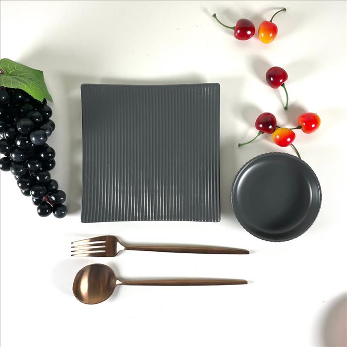 套裝餐具 正方形條紋啞光絨盤、咖啡杯、小菜碟(大.小) 黑灰色