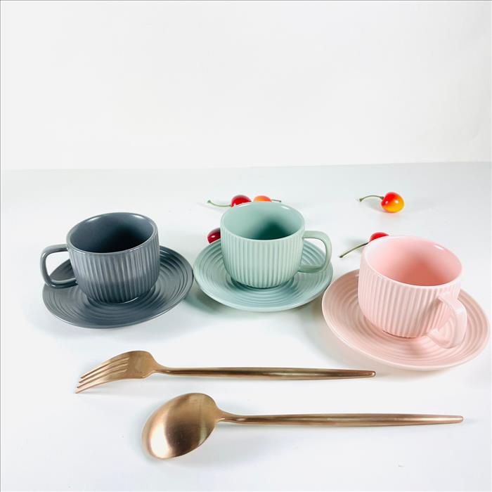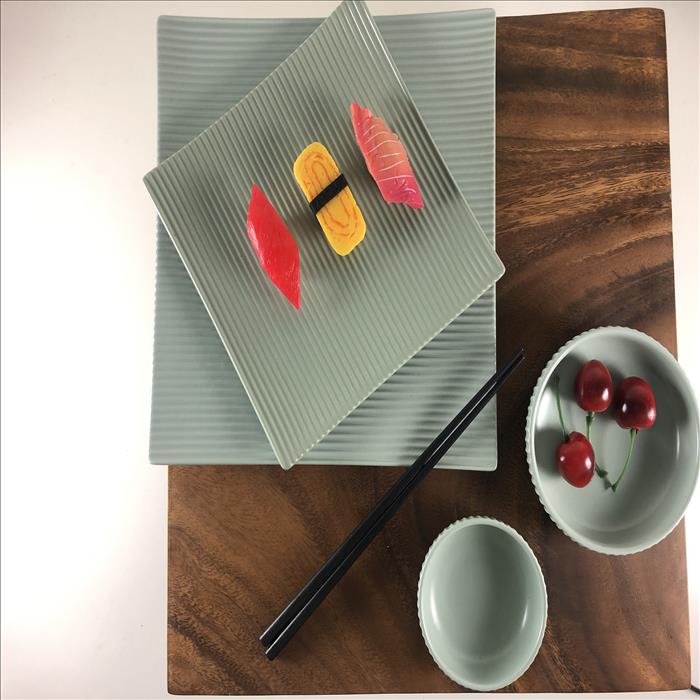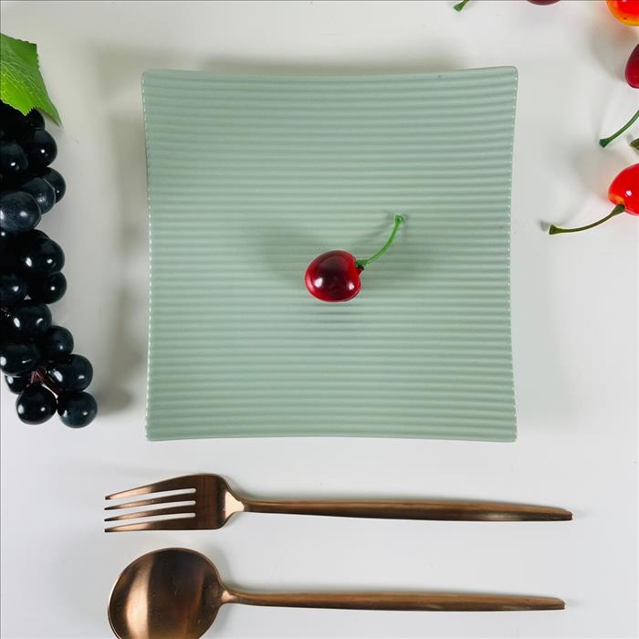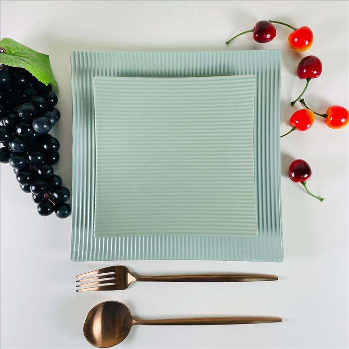 套裝餐具 正方形條紋啞光絨盤、咖啡杯、小菜碟 (大.小) 綠色