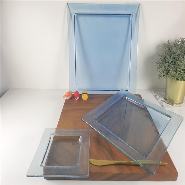 窯燒玻璃盤/【藍光】四角正方盤 (小)(中)(大)(最大)