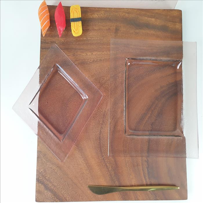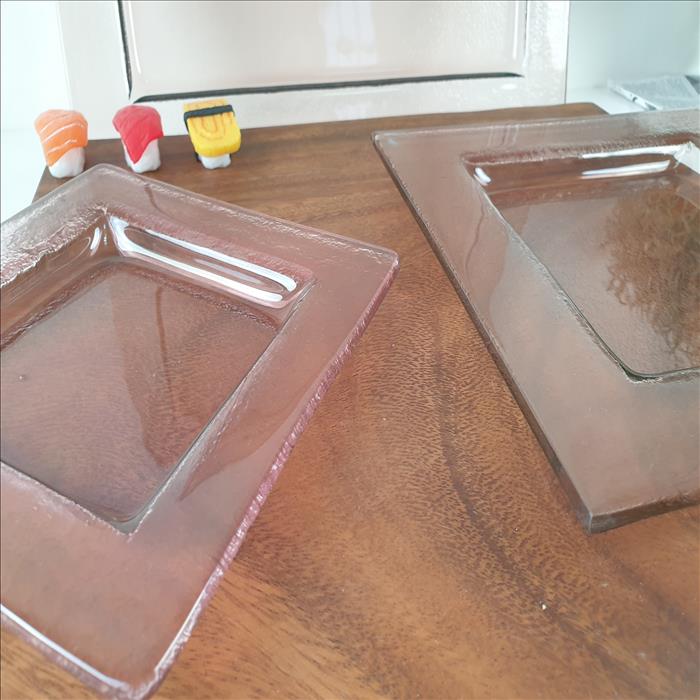 窯燒玻璃盤/【粉色】四角正方盤 (小)(中)(大)(最大)