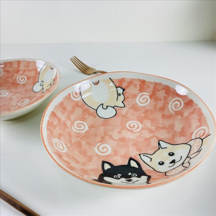 日貨 【日本彩繪柴犬陶瓷盤】 可微波可進爐