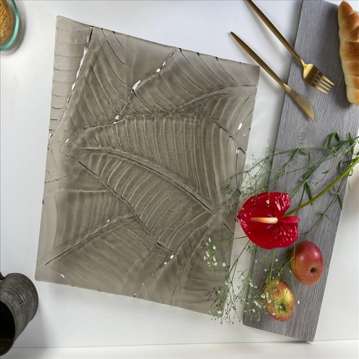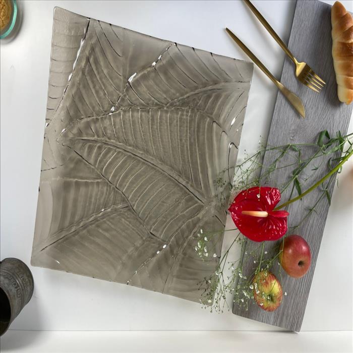 窯燒玻璃盤/正方玻璃盤【樹葉】