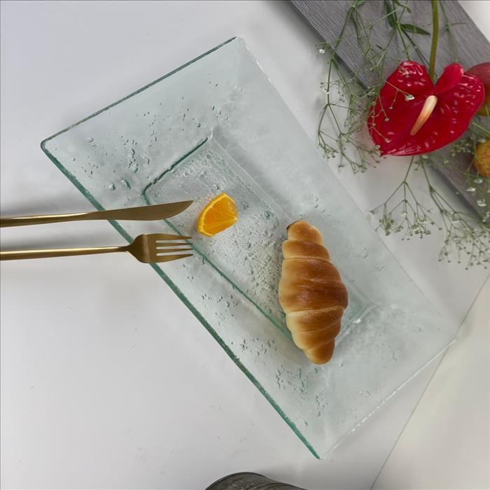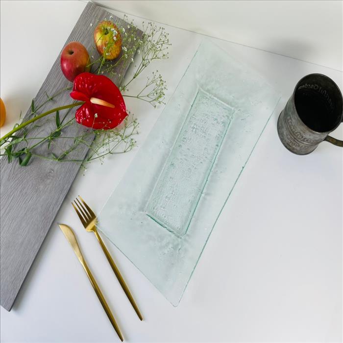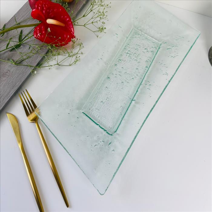 窯燒玻璃盤/長方斜紋氣泡盤