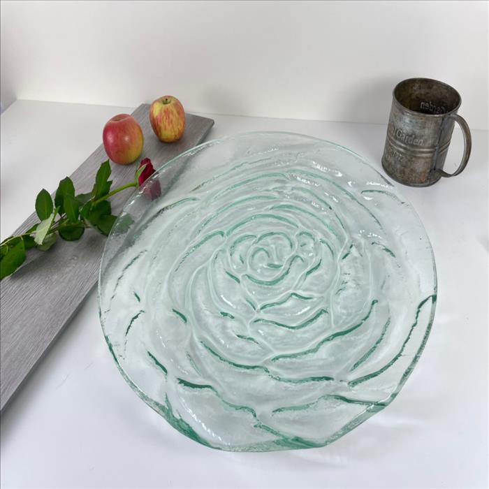 窯燒玻璃盤/圓型大圓盤【玫瑰】