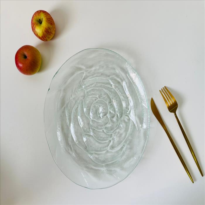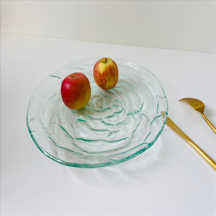 窯燒玻璃盤/圓型小圓盤【玫瑰】