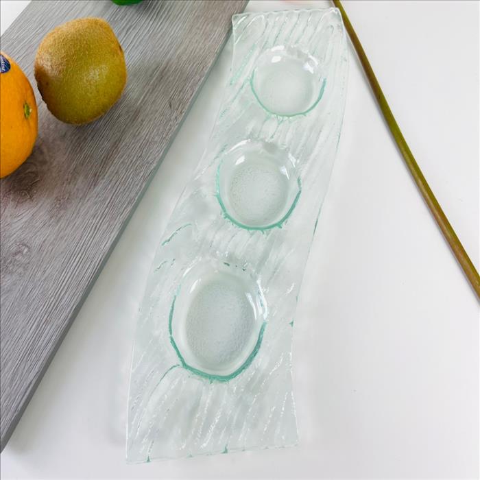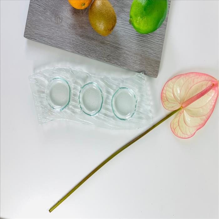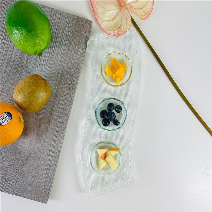 窯燒玻璃盤/三格S型甜點盤/冷菜盤/餐廳愛用