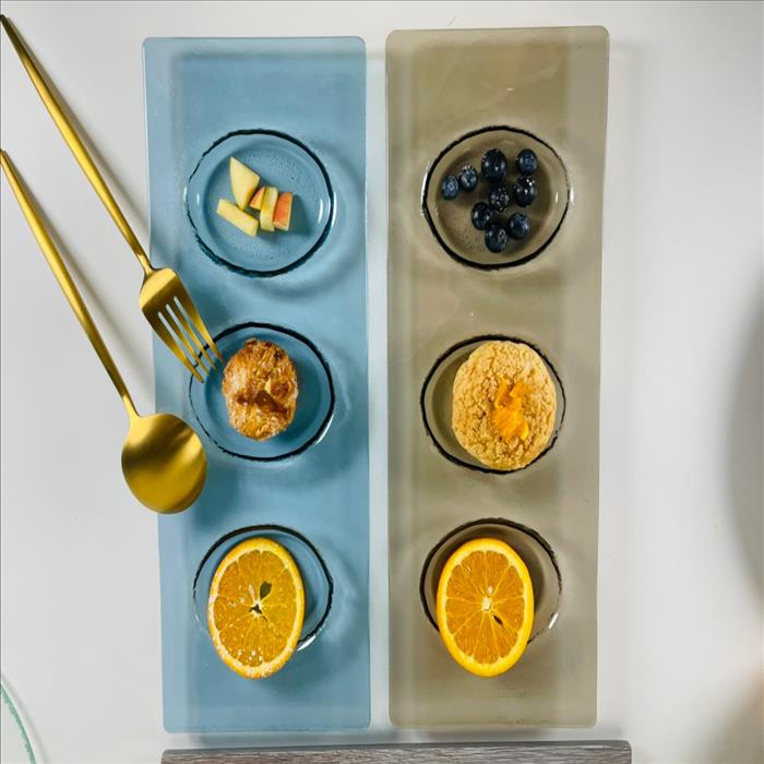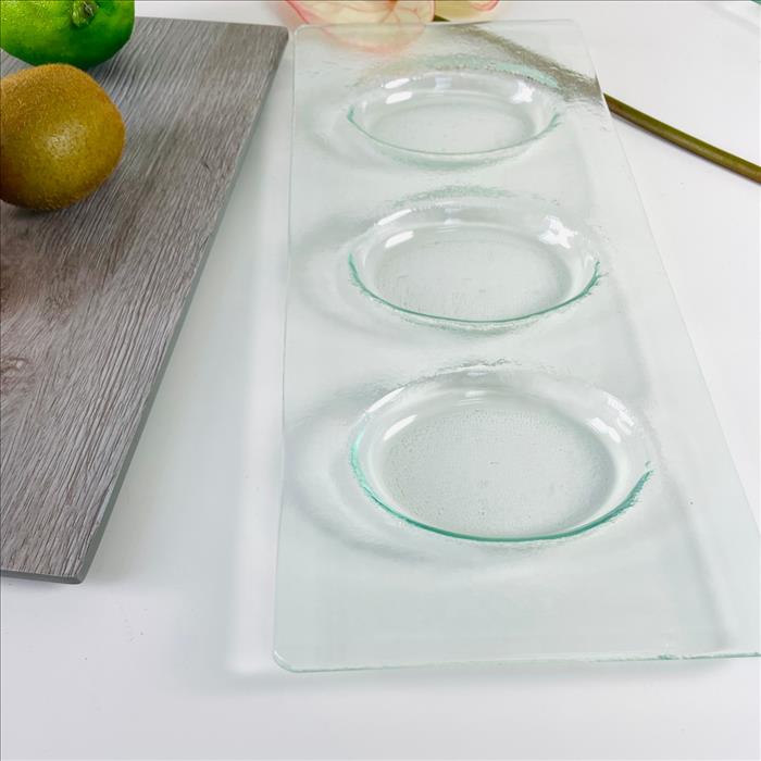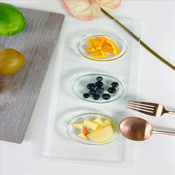窯燒玻璃盤/三格蛋型甜點盤/冷菜盤/餐廳愛用
