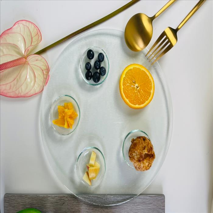 窯燒玻璃盤/五格圓型輪盤甜點盤/冷菜盤/餐廳愛用