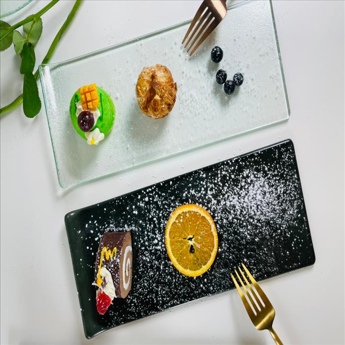 窯燒玻璃盤/長方手托盤/冷菜盤/甜點盤/主餐盤/雙色可選 可雷射雕刻LOGO 請提供圖稿估價