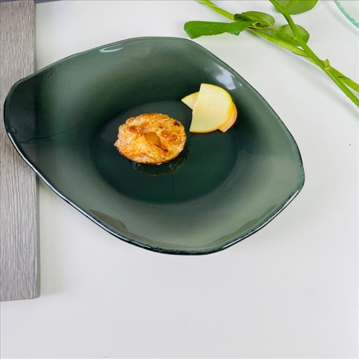 窯燒玻璃盤/墨石黑不規則圓盤/雙色可選