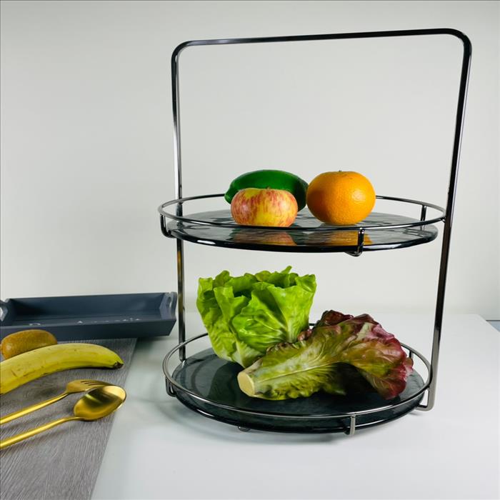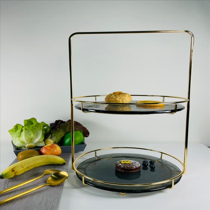 Square 下午茶架(大)搭配窯燒手工琉璃盤/蛋糕架/點心架/下午茶架/亮金色/黑銀色