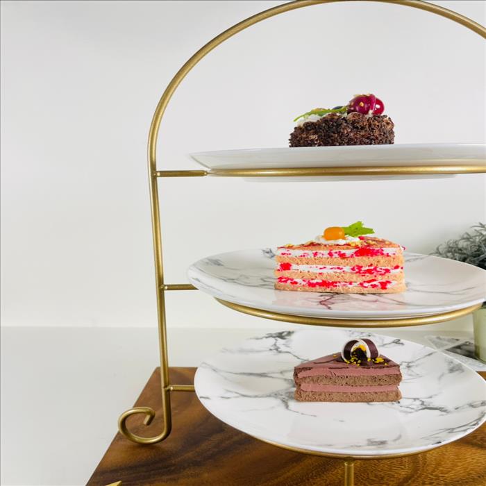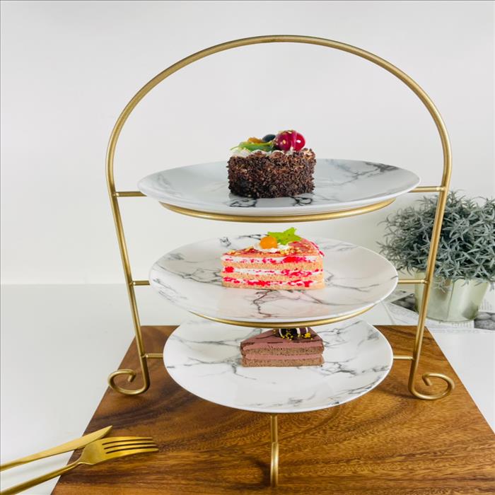 經典三層圓形點心盤架搭8吋大理石紋盤/蛋糕架/點心架/下午茶架/烤漆金