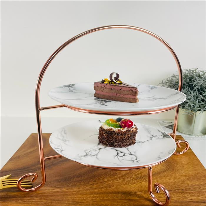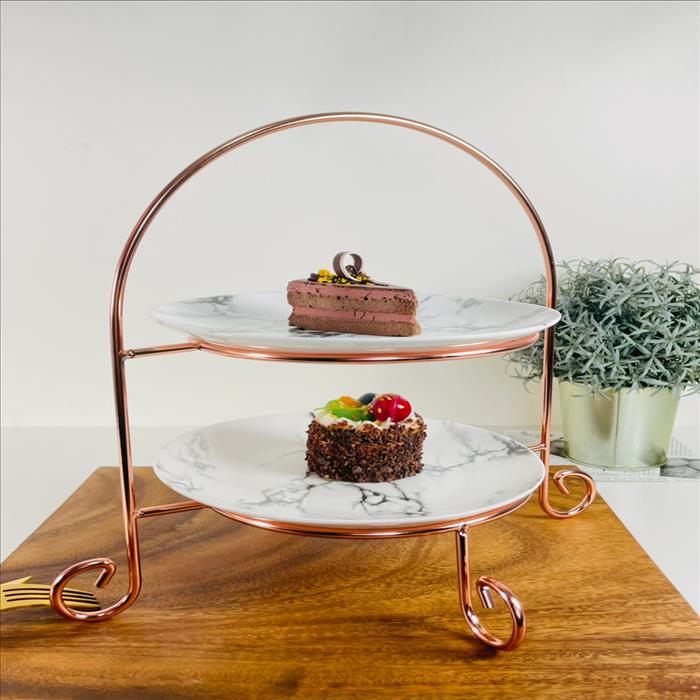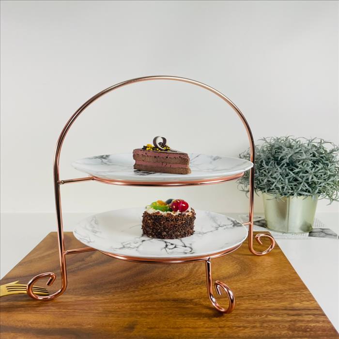 經典雙層圓形點心盤架搭8吋大理石紋盤/蛋糕架/點心架/下午茶架/玫瑰金