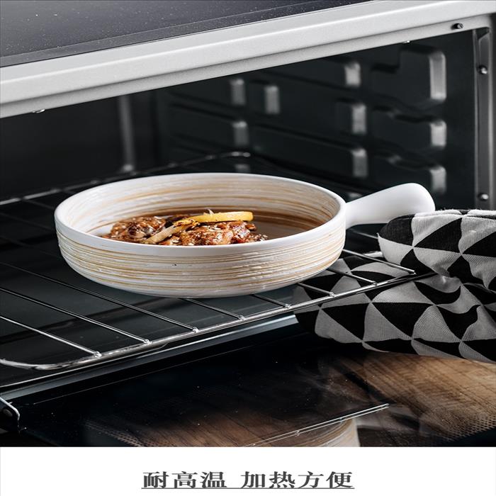 北歐風 帶手柄創意烤碗/烘焙碗/烤箱專用焗飯碗 , 創意陶瓷西餐盤 居家餐廚擺設 質感裝飾 條紋淺盤 可訂製專屬禮盒 柚木紋刀叉盒 可雷雕logo , 古樸自然花型粗陶浅盤菜盤點心盤咖啡廳