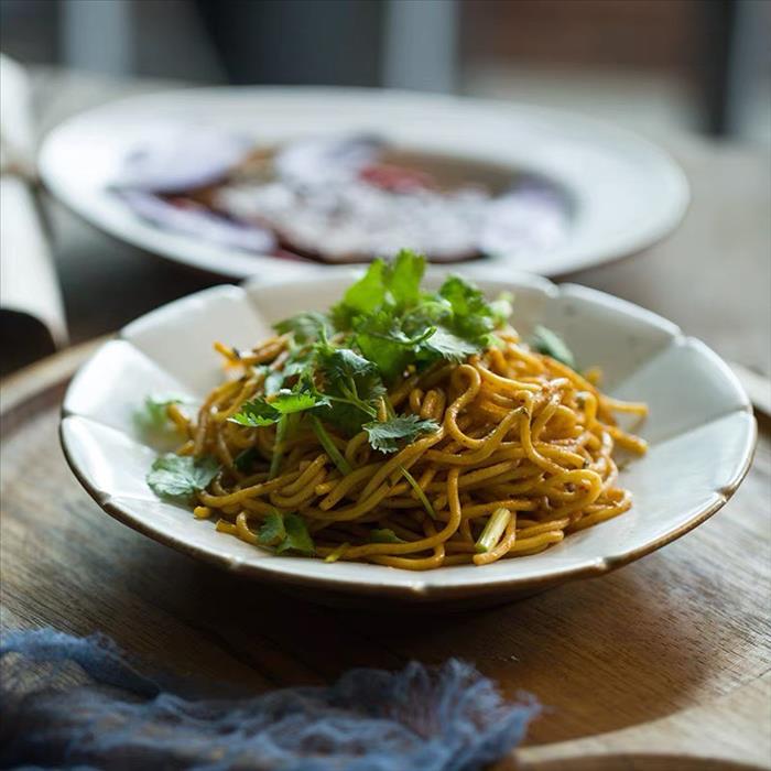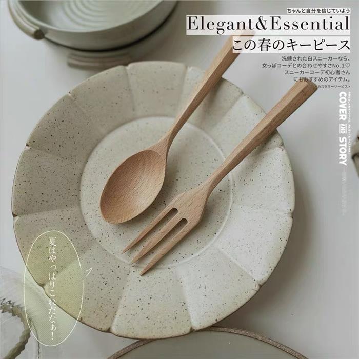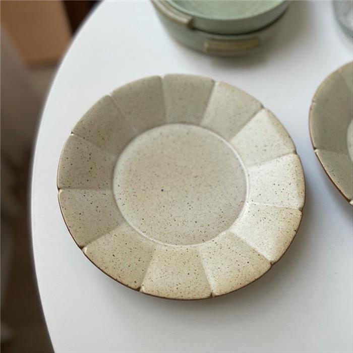 古樸自然花型粗陶浅盤菜盤點心盤咖啡廳
