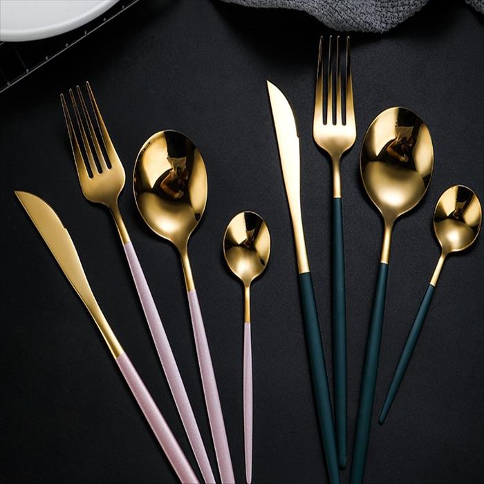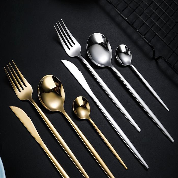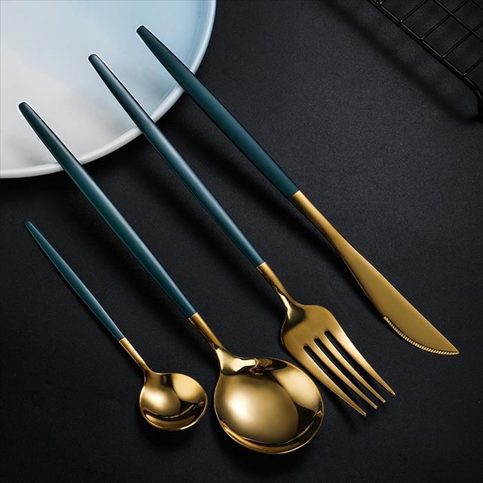 套裝餐具 北歐風 不鏽鋼 葡萄牙餐具 刀叉筷家用餐具四件可選(刀、叉、勺、咖啡勺) K金色