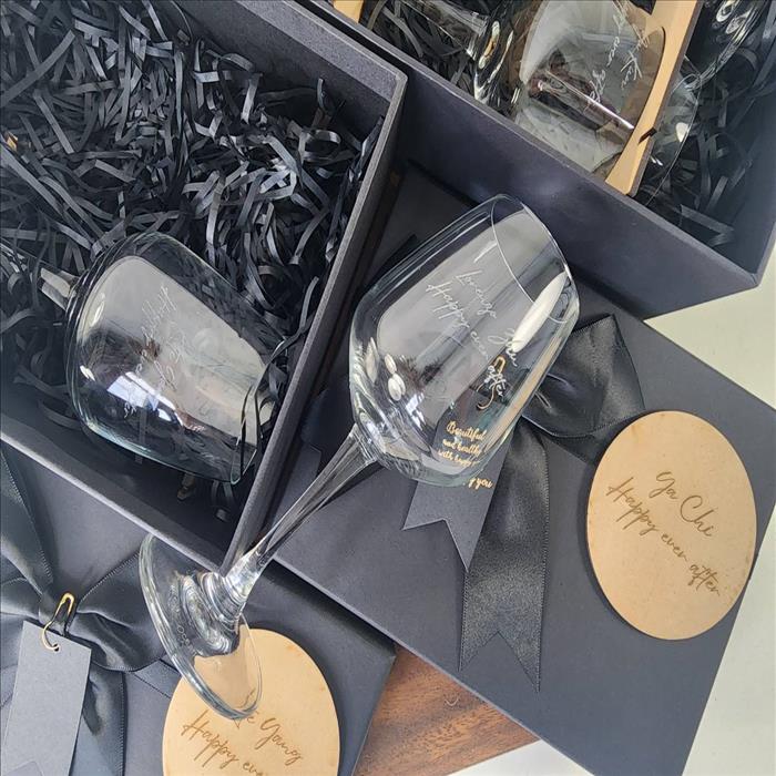 玻璃杯雕刻 標準紅酒杯系列 雙入包裝 可刻名字附禮盒紙袋 木質賀卡 可加購升級專屬木盒裝