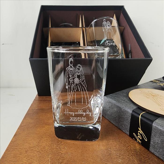 玻璃杯雕刻 | 基本三款威士忌酒杯雕刻Logo 字圖 | 可代客光雕 單入木盒 禮盒包裝