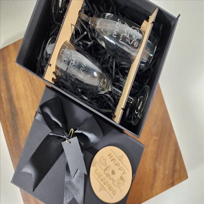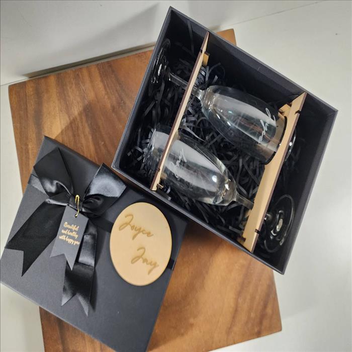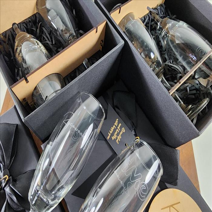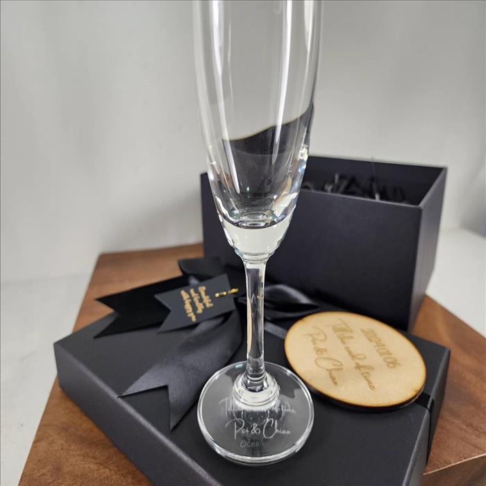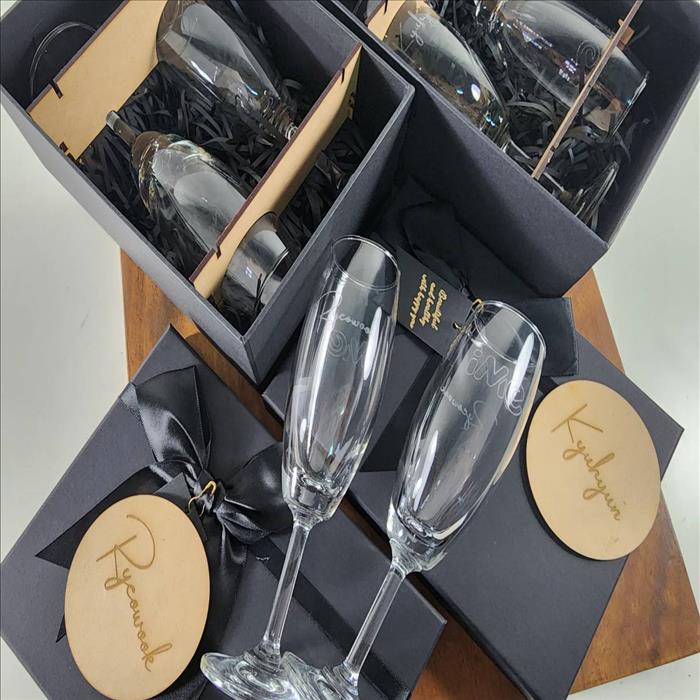 玻璃杯雕刻 標準香檳杯 可刻名字 LOGO 附禮盒紙袋 木質賀卡