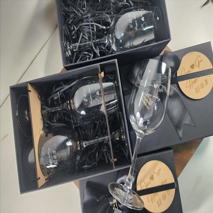 玻璃杯雕刻 高級紅白酒杯 可刻名字 LOGO 附禮盒紙袋 木質賀卡 可加購升級專屬木盒裝