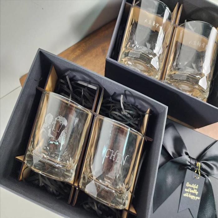 玻璃杯雕刻 Connexion 威士忌酒杯 雙入禮盒 可刻名字 LOGO 附禮盒紙袋 木質賀卡