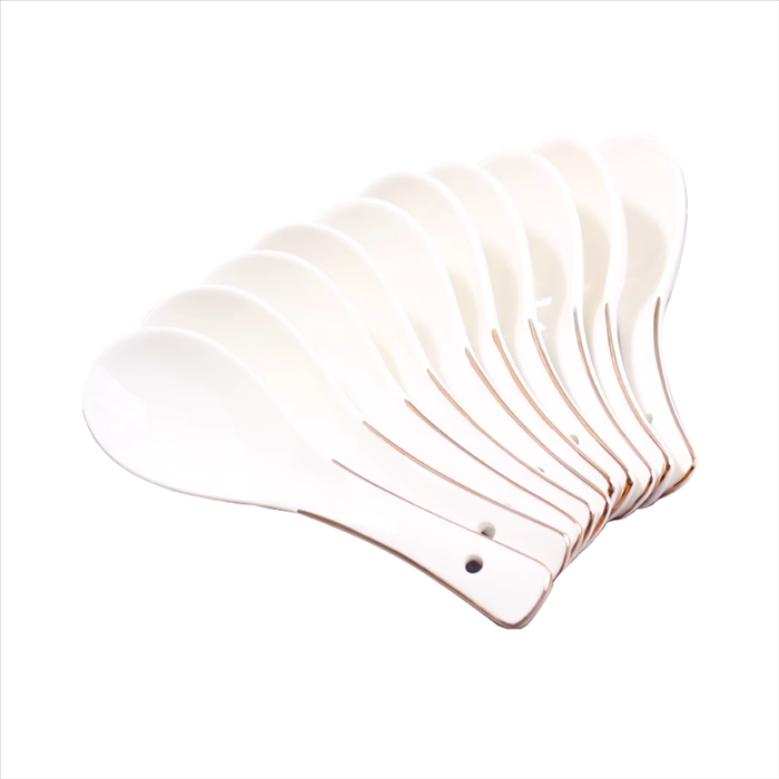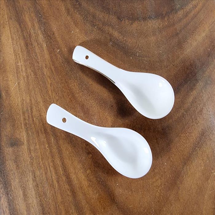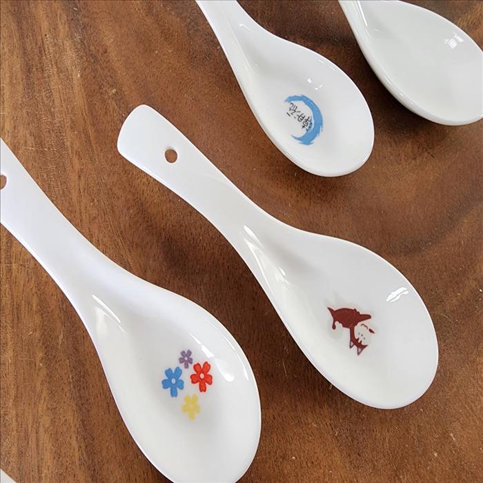 純白陶瓷小湯勺 飯勺 湯匙 可客製釉上燒花LOGO圖樣