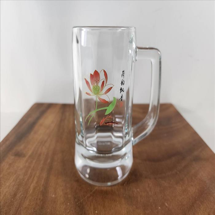 玻璃杯印刷 釉燒彩色玻璃杯 附柄啤酒杯(小)-355ml 圖案耐洗不掉