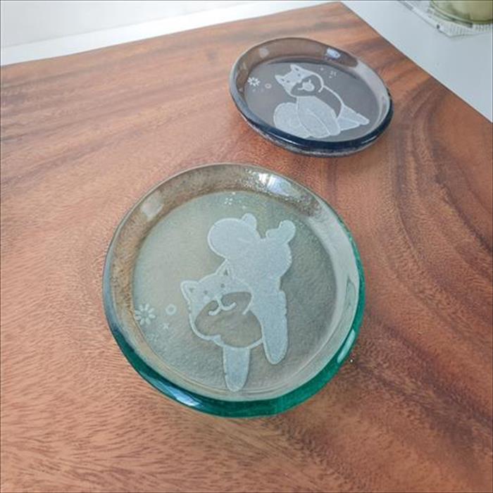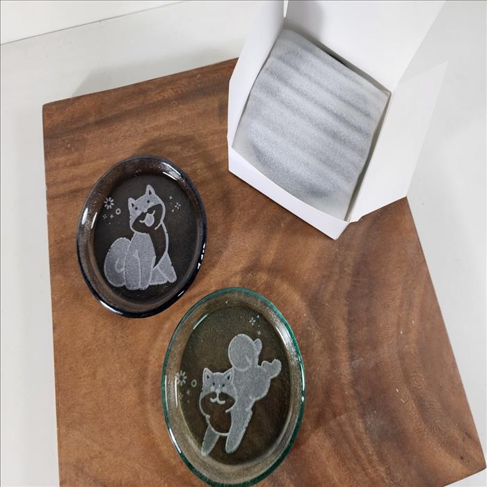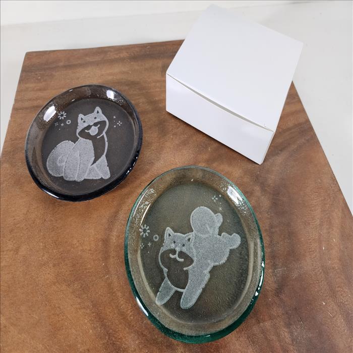 玻璃盤雕刻 圓形醬料碟 醬油碟/小菜淺盤(四色可選) 雙入盒裝 可雷射雕刻LOGO 最低50組起訂