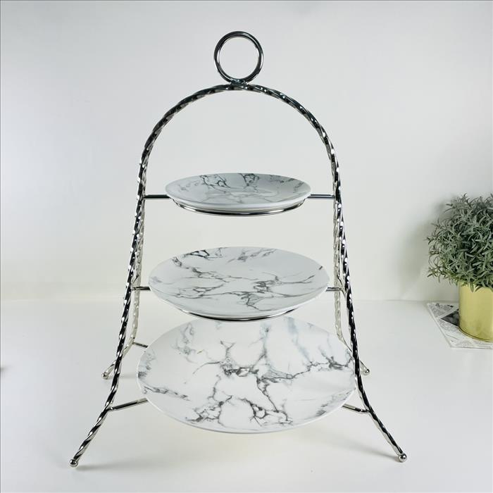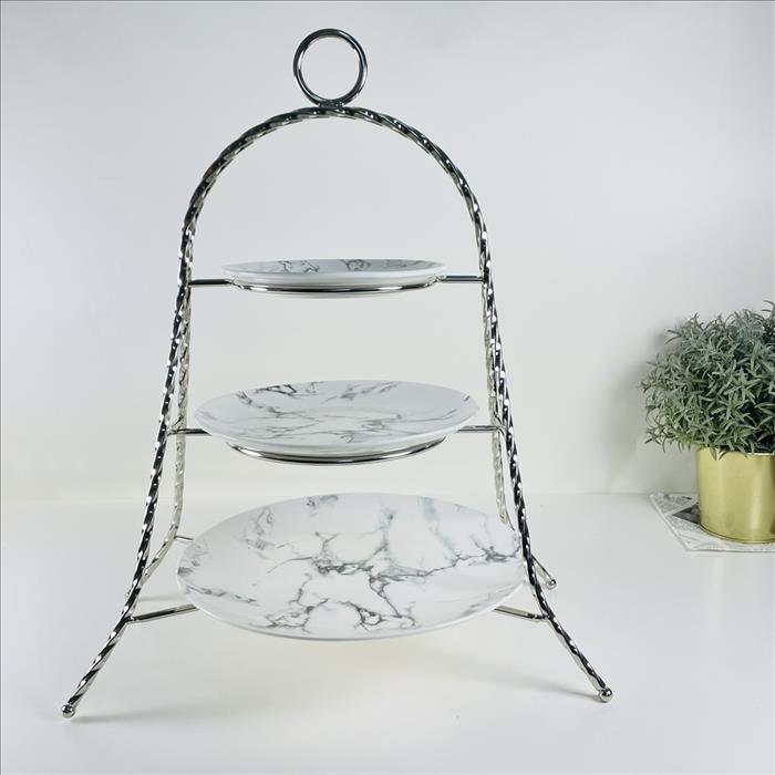 螺旋塔型三層盤架/蛋糕架/點心架/下午茶架/ 亮銀款