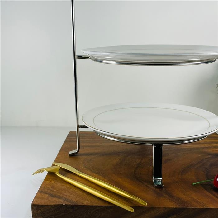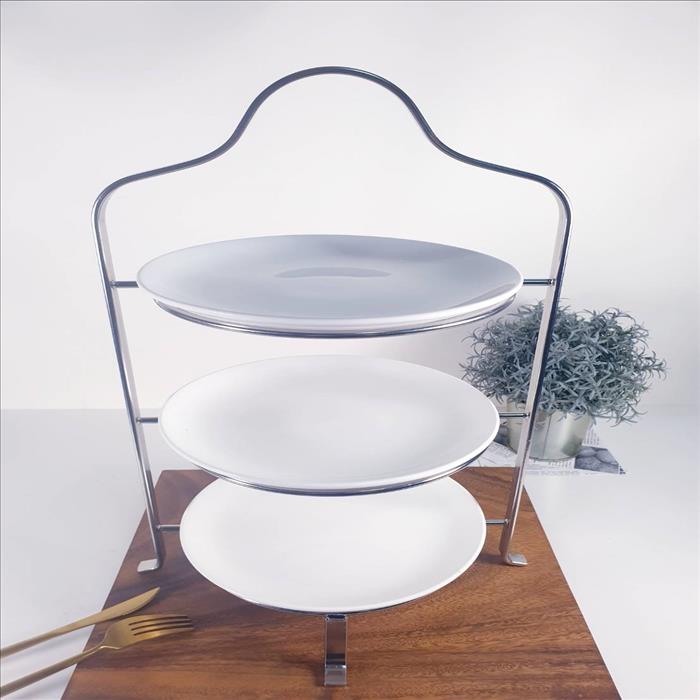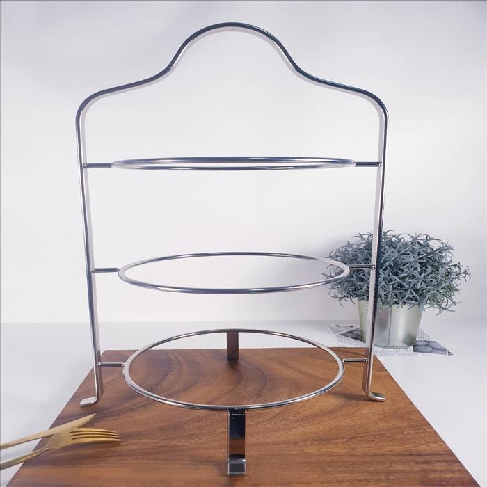 英式扁線三層下午茶架/蛋糕架/點心架/下午茶架/(高款)亮銀色
