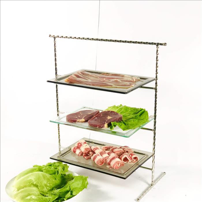 螺旋長方形三層盤架/肉品架/蛋糕架/點心架/下午茶架/火鍋擺盤
