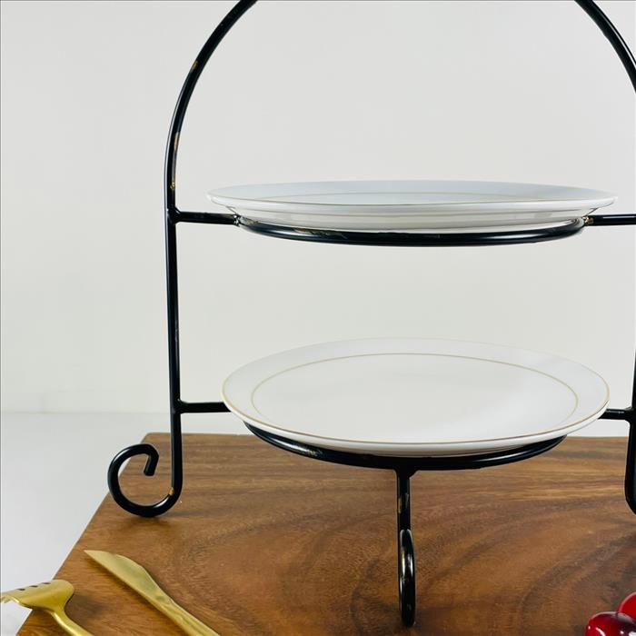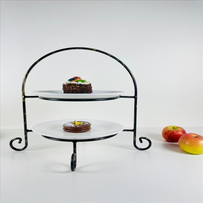 經典二層圓型點心盤架/蛋糕架/點心架/下午茶架/黑金色