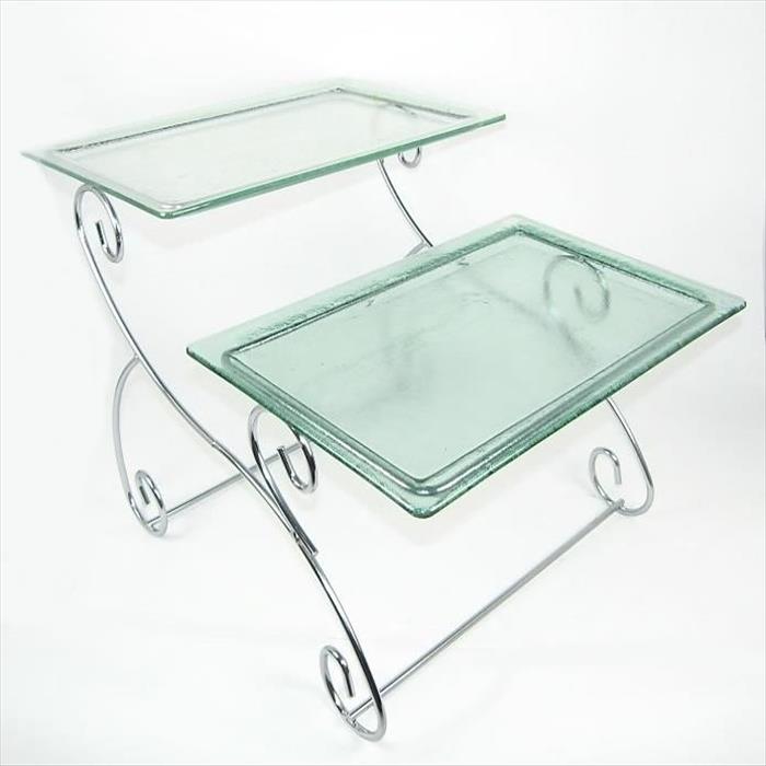 二層階梯式自助餐盤架/蛋糕架/點心架/下午茶架/銀色 , 窯燒玻璃盤/圓型玻璃碗【波紋】