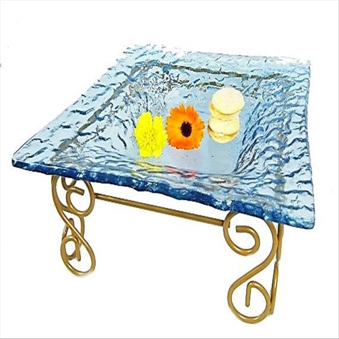 架子:烤漆金色 ,玻璃盤:藍色 |
