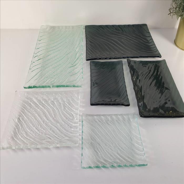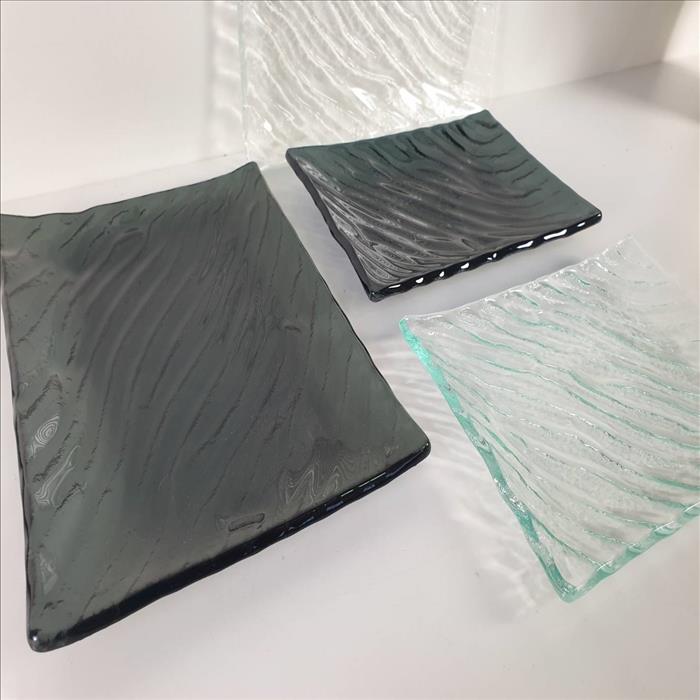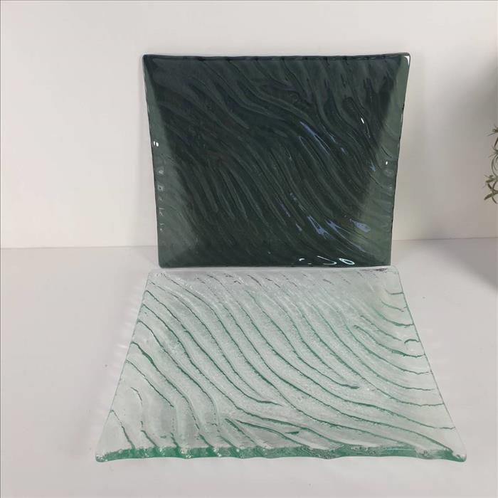 窯燒玻璃盤/方型玻璃盤【樹紋】