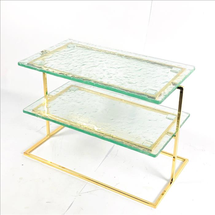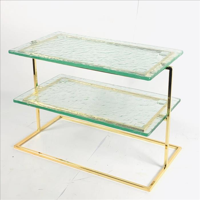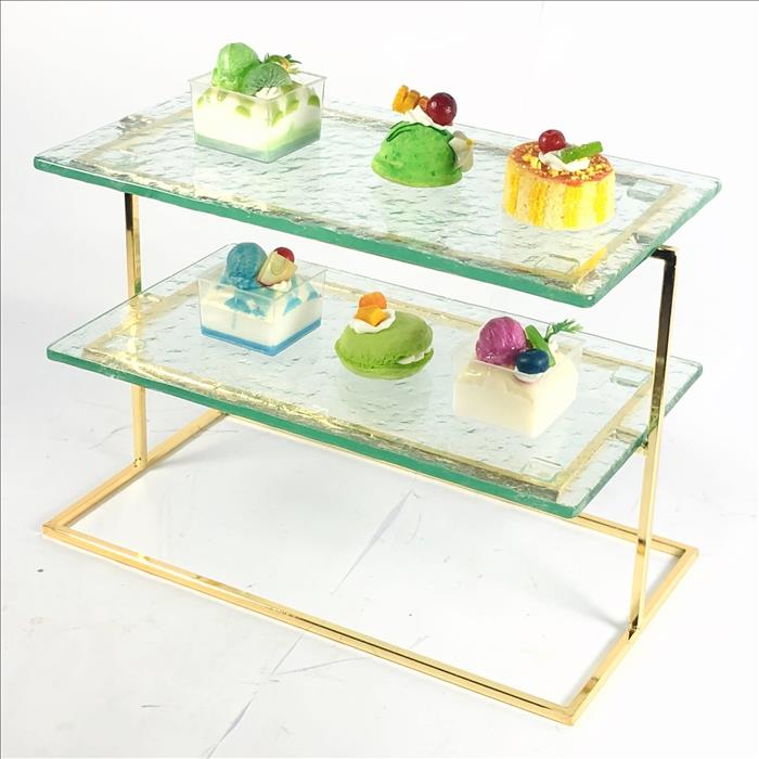 長方型雙層Cable盤架 層架/蛋糕架/點心架/下午茶架(亮金色)