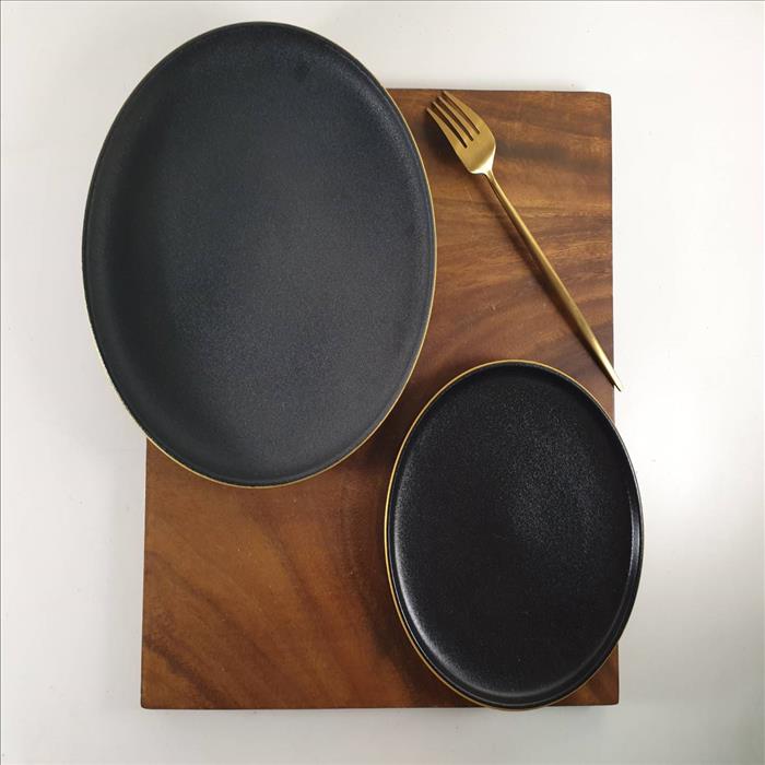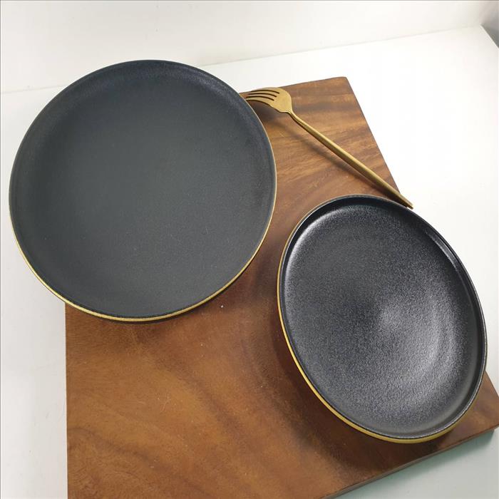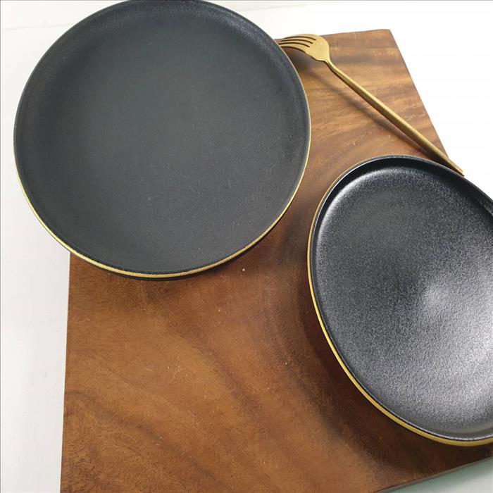 北歐風 黑色磨砂餐盤 居家餐廚擺設 質感裝飾 餐盤 盤子 10、7.5吋弧邊盤(金邊)