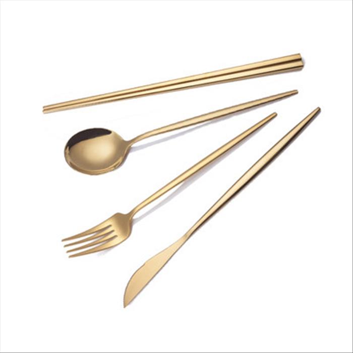 北歐風 不鏽鋼 葡萄牙餐具 刀叉筷家用餐具五件可選(刀、叉、勺、筷子) K金色