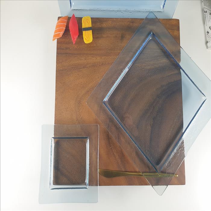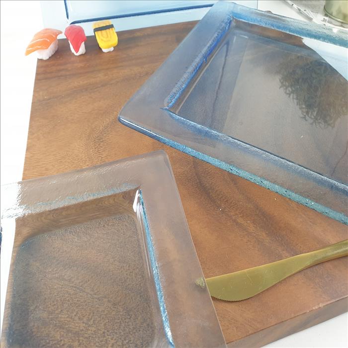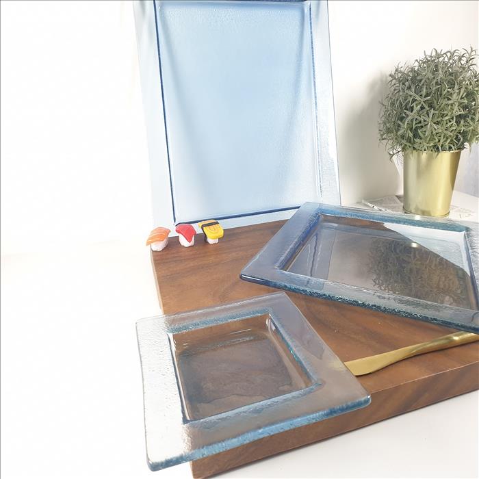窯燒玻璃盤/【藍光】四角正方盤 (小)(中)(大)(最大)