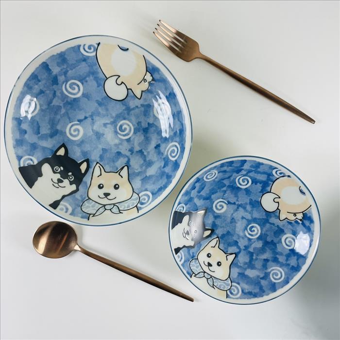 日貨 【日本彩繪柴犬陶瓷盤】 可微波可進爐