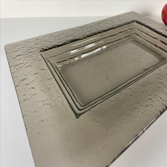 窯燒玻璃盤/長方氣泡凹盤/茶色【階梯】