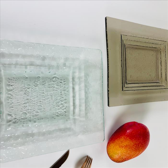 窯燒玻璃盤/正方氣泡凹盤(小)/【階梯】