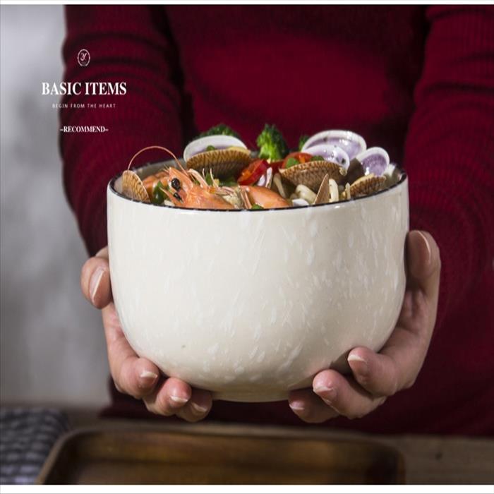 日式陶瓷6.5吋圓碗 大口徑泡麵碗、湯碗、沙拉碗、拉麵碗 家用湯碗