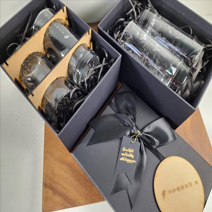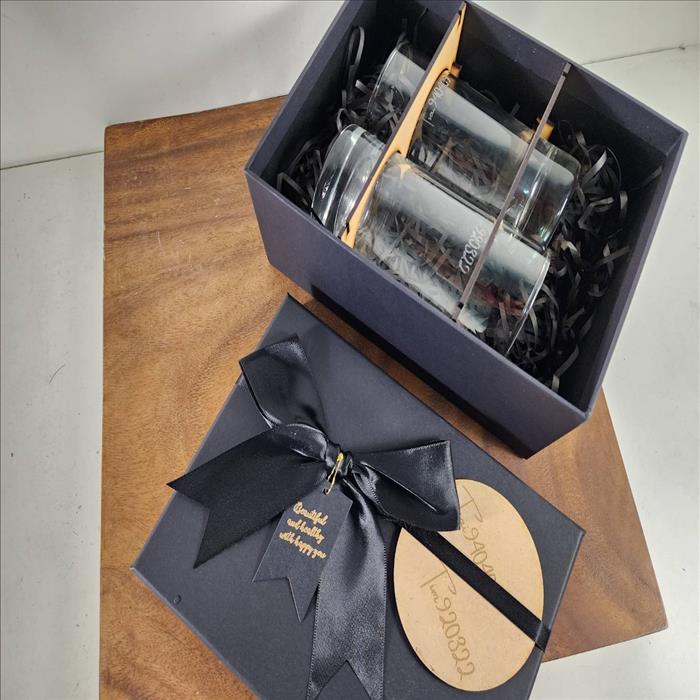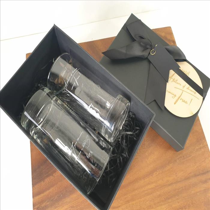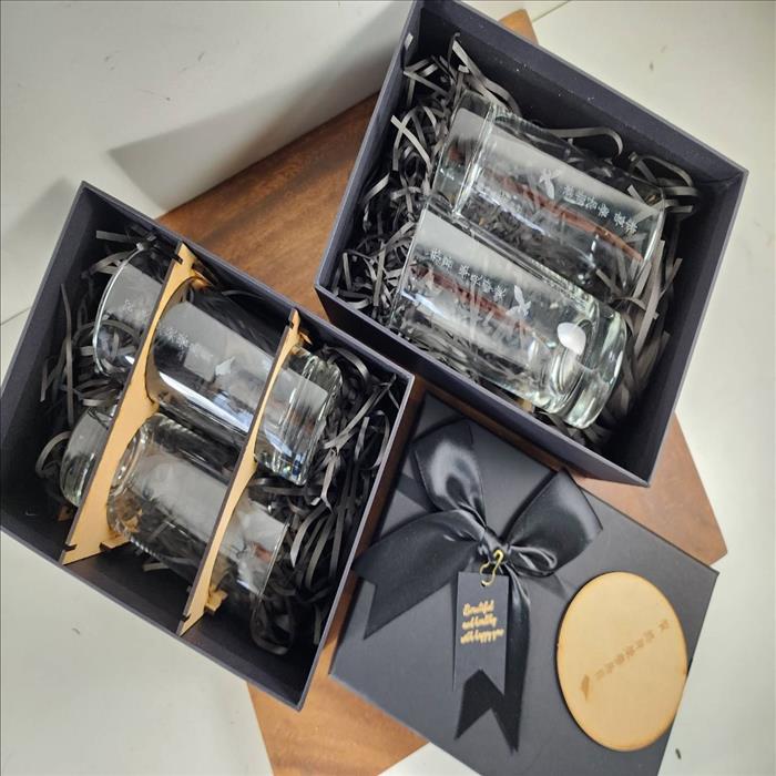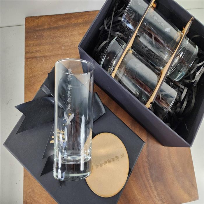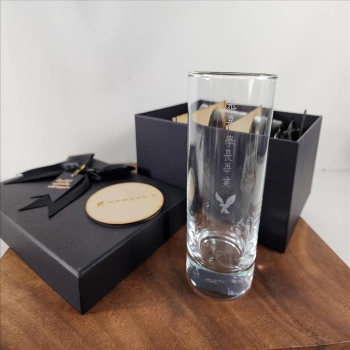 玻璃杯雕刻 果汁杯 水杯 可林杯 雙入禮盒 可來圖訂製 可刻名字附禮盒紙袋 木質賀卡