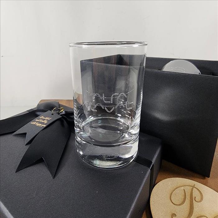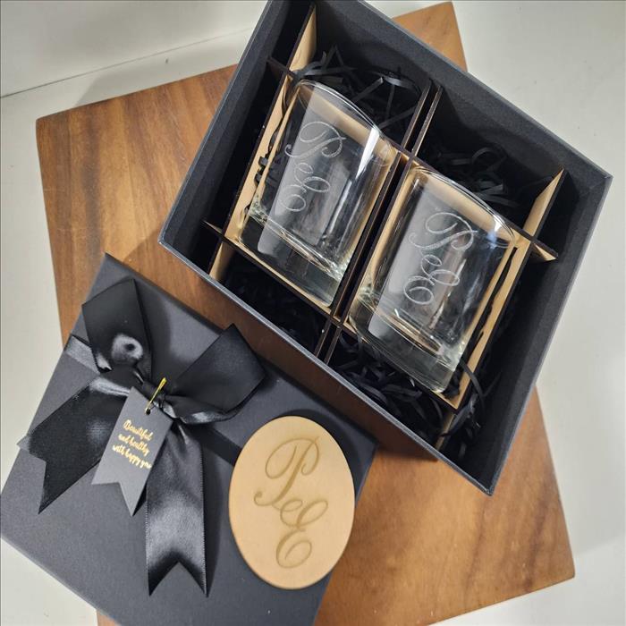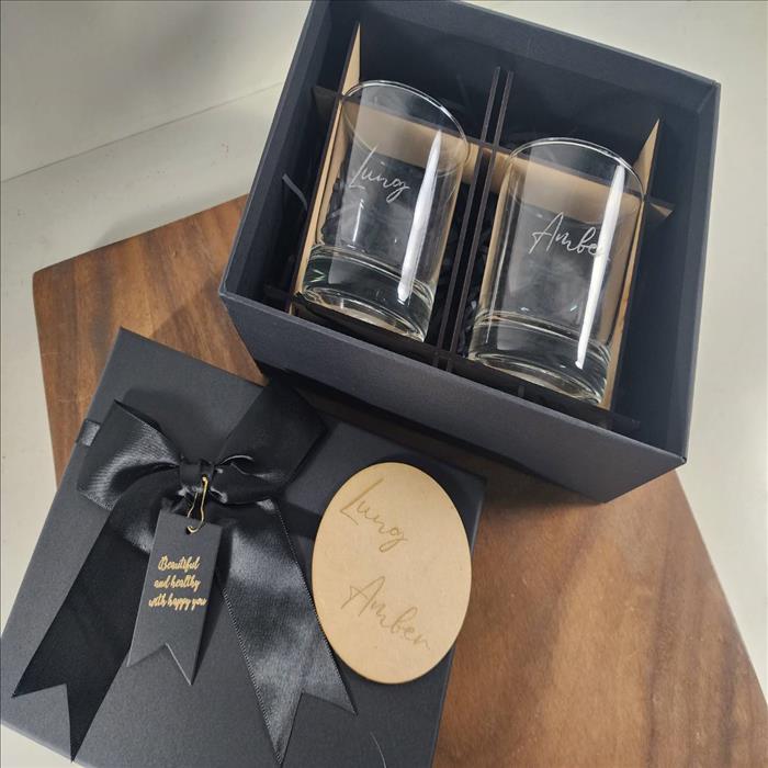 玻璃杯雕刻 威士忌酒杯 雙入禮盒 可刻名字 LOGO 附禮盒紙袋 木質賀卡