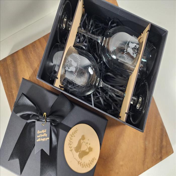 玻璃杯雕刻 高級紅白酒杯 可刻名字 LOGO 附禮盒紙袋 木質賀卡 可加購升級專屬木盒裝