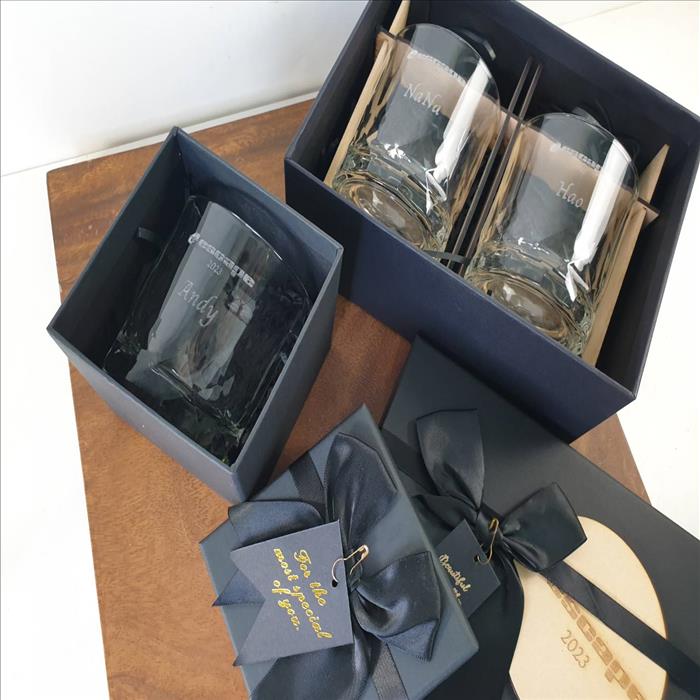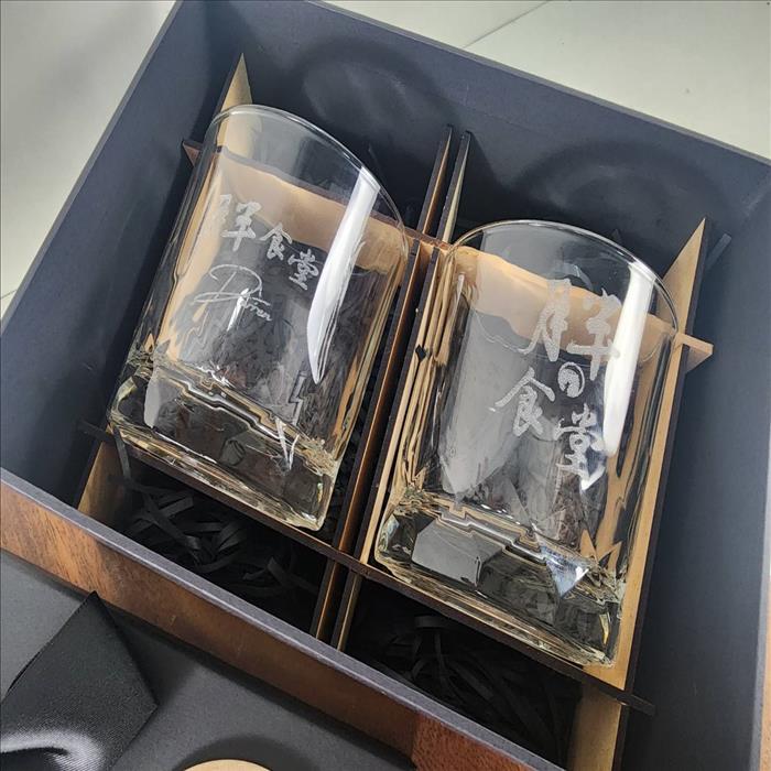 玻璃杯雕刻 Connexion 威士忌酒杯 雙入禮盒 可刻名字 LOGO 附禮盒紙袋 木質賀卡