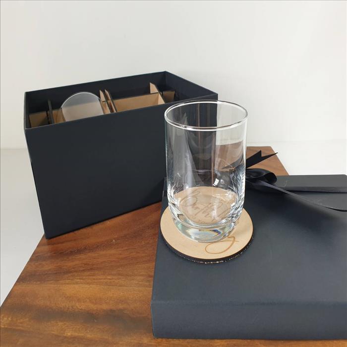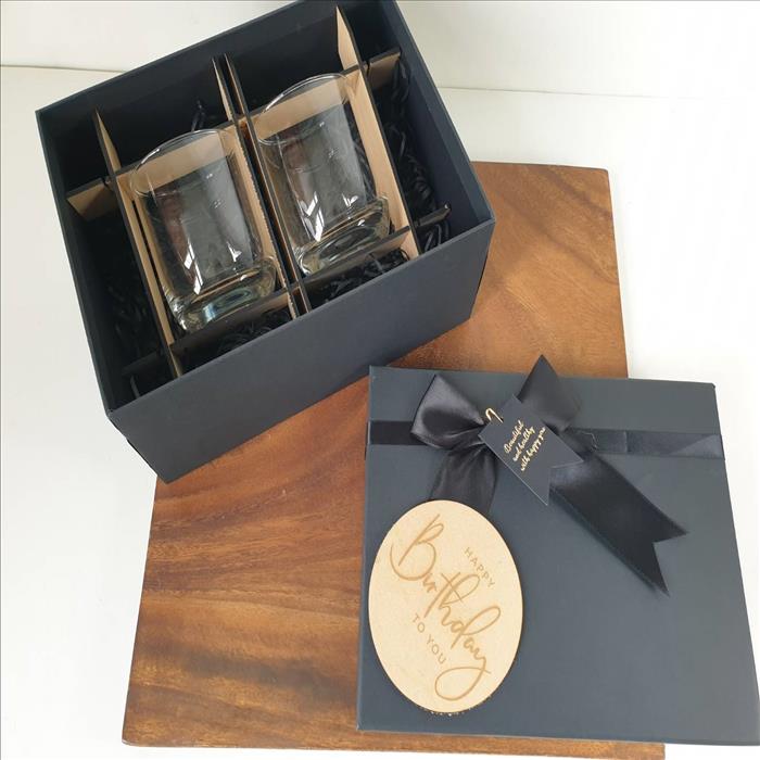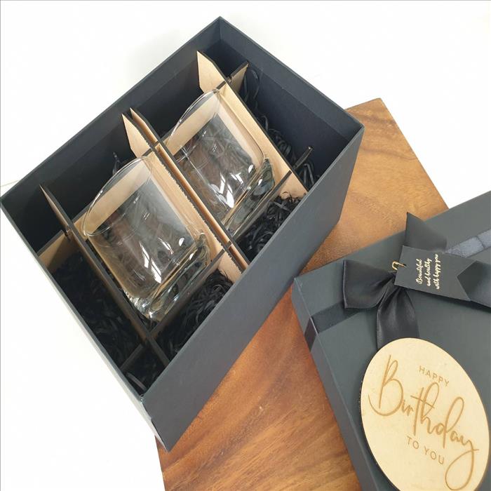 玻璃杯雕刻 圓底威士忌杯 雙入禮盒 可刻名字 LOGO 附禮盒紙袋 木質賀卡