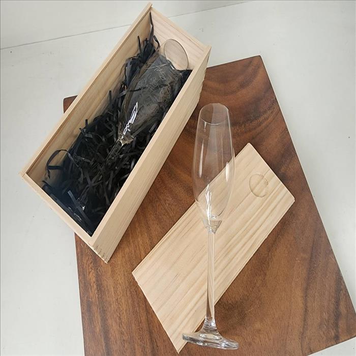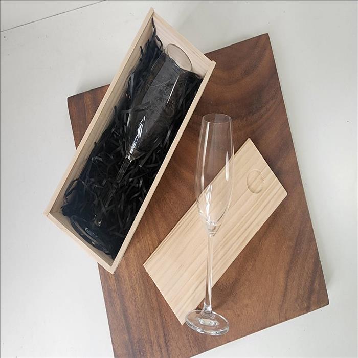 玻璃杯雕刻 | 高級桑迪香檳杯-210ml | 雕刻Logo 文字 | 專屬木盒單入裝