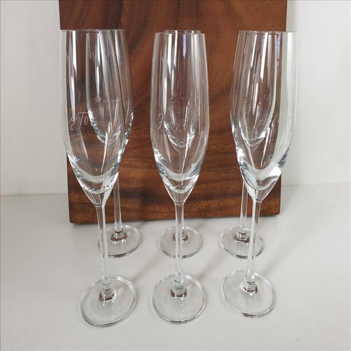 玻璃杯雕刻 | 桑迪香檳杯-210ml/6入 | 雕刻Logo 文字 |